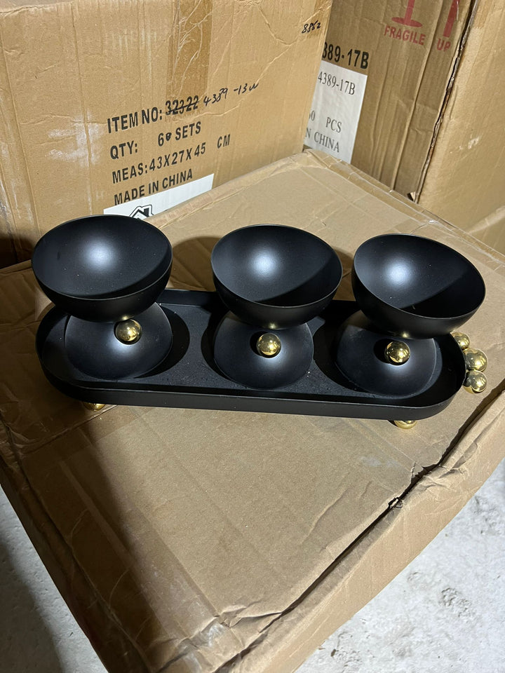 طقم صنيه و3 كاسات 5-4389 ابيض واسود